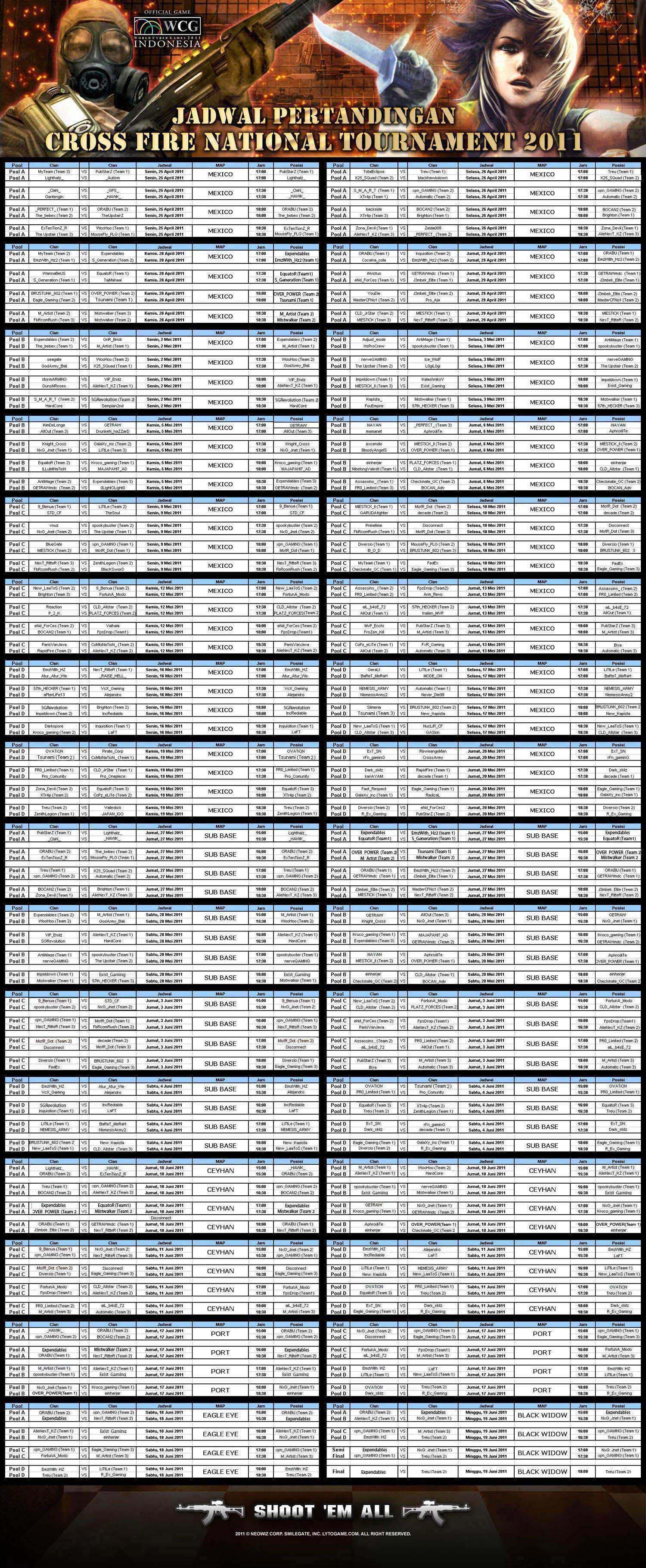 Halo prajurit CF, Ada kabar gembira untuk para prajurit Cross Fire!!Di tahun 2011 ini, Cross Fire Online Indonesia akan mengadakan tournament nasional untuk kedua kalinya, yang kami sebut sebagai Cross Fire National Tournament 2011!!